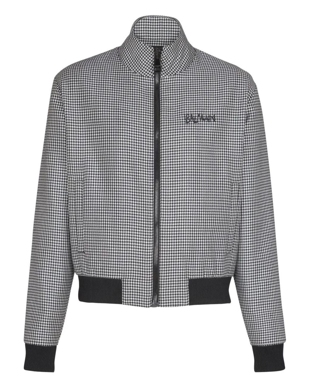 Men's Grey Houndstooth-Pattern Zip Jacket