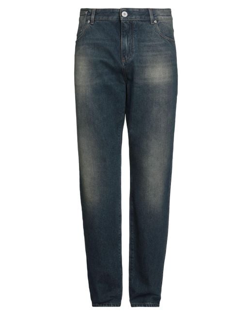BALMAIN. straight-leg jeans, denim, faded, plain colour, brand logo, dark wash, high waisted, belt loops, straight leg, regular fit, button fastenings, five pockets, hand wash, do not bleach, do not tumble dry. 100% Cotton, Polyester. Colour: blue