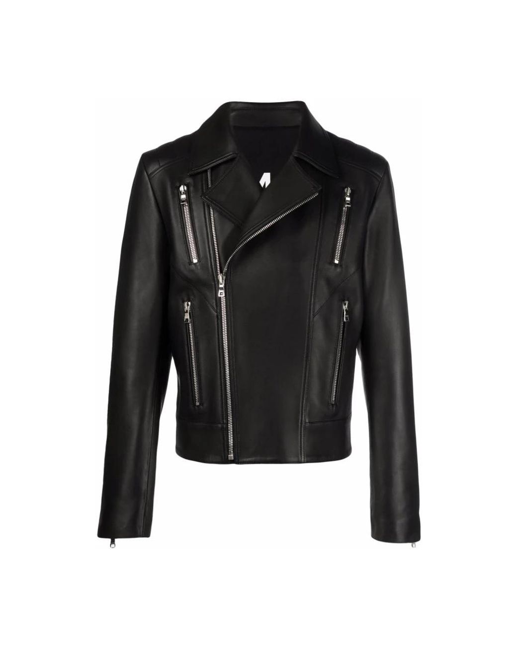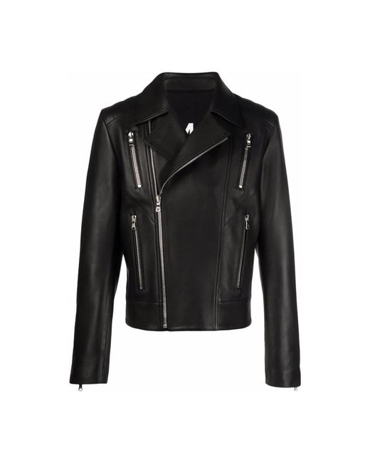 Balmain's Zipped Leather Biker Jacket is a short, structured biker jacket that pairs classic moto details with signature metal hardware for an elevated everyday outer layer. Key attributes: Black | Sheep leather | Asymmetric front zip fastening | Two slanted zipped pockets | One flap pocket and one inside pocket | Matching smooth leather belt | Zipped cuffs | Biker collar | Shoulder embellishments with metal "Signature Lion" rivets and buttons | Asymmetric front zip | Belted waist | Cuff zip detail | Dimensions & fit: Short, tight fit | Composition & care: Outer: Sheep Leather 100% | Professional leather clean only. Protect hardware before cleaning. Store on a hanger away from direct light and heat. Avoid prolonged exposure to water.