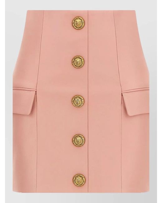 High-waisted design | Side flap pockets | Gold-tone buttons | Back zip closure Colour: pink