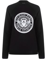 Refresh your off duty collection with the logo sweatshirt from Balmain. Constructed with a classic crew neckline, ribbed trims and long sleeves, this style is finished with the brands iconic logo emblazoned to the centre. Sizing selection:British sizing (French sizing)Fits true to size, take your usual sizeCut with a regular fit100% CottonHand wash only Noir/Blanc 6 (34). Colour: black
