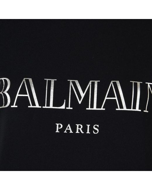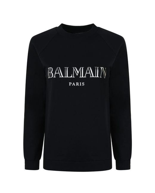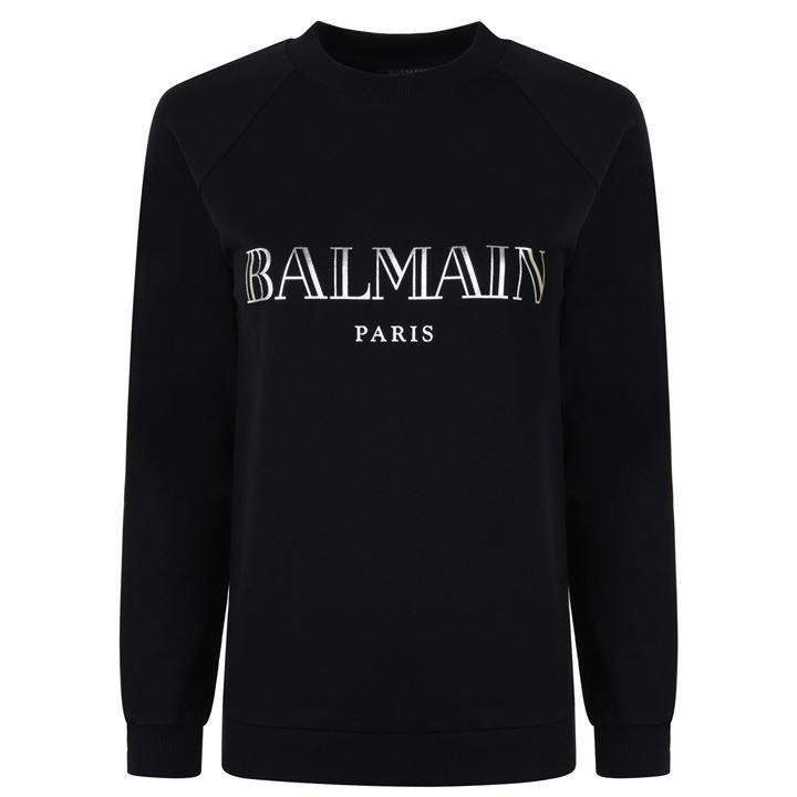 Refresh your off duty collection with the logo sweatshirt from Balmain. Constructed with a classic crew neckline, ribbed trims and long sleeves, this style is finished with the brands iconic logo emblazoned to the centre. Sizing selection:British sizing (French sizing)Fits true to size, take your usual sizeCut with a regular fit100% CottonHand wash only Noir/Argent 8 (36).