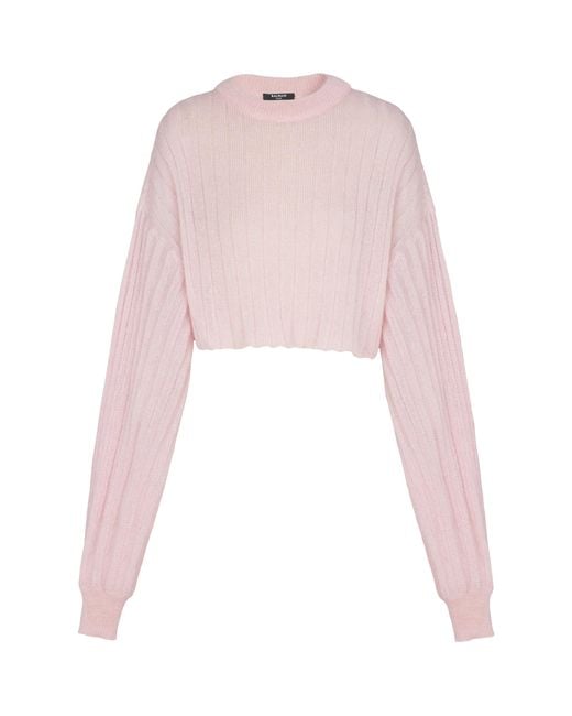 Always one to experiment, Balmain plays with cut and tactility with this jumper. The soft and fluffy texture of mohair wool is combined with the fineness of silk to form a lightweight ribbed knit, while a cropped silhouette with dropped shoulders ensures effortless appeal. Colour: pink
