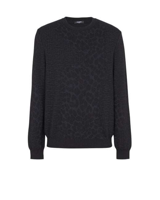 Men's Blue Monogram Knit And Leopard Pattern Jumper