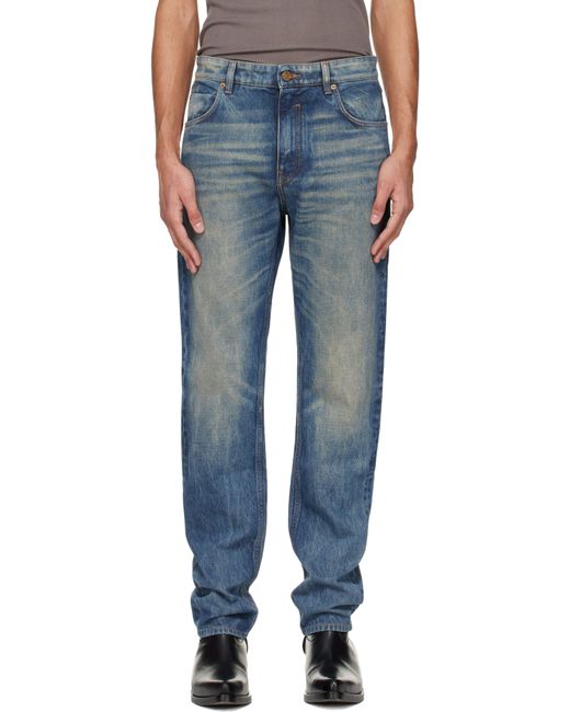 Non-stretch denim jeans. · Fading and whiskering throughout · Belt loops · Five-pocket styling · Zip fly · Logo patch at back waistband · Contrast stitching in tan Supplier color: Bleu jean délave Colour: blue