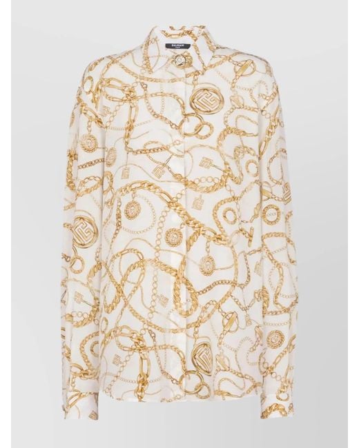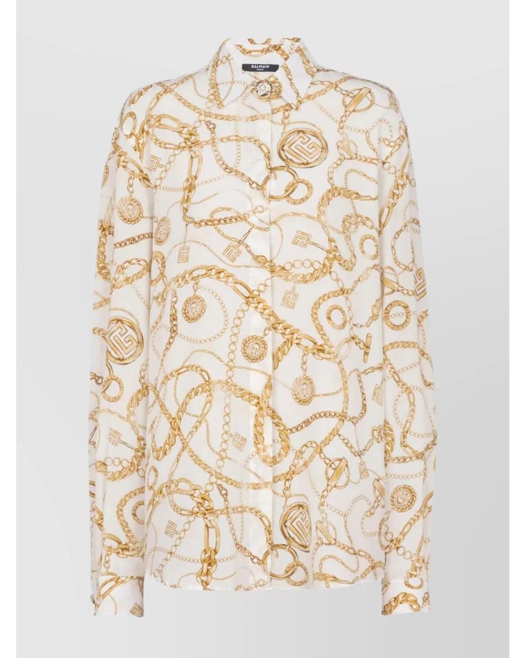 Colletto classico | Fit morbido | Maniche lunghe | Taglio dritto | Finiture eleganti | Pura seta | Stampa Chaînes all-over | Dettagli iconici PB | Bottoni dorati incisi | Button-down front Colour: natural