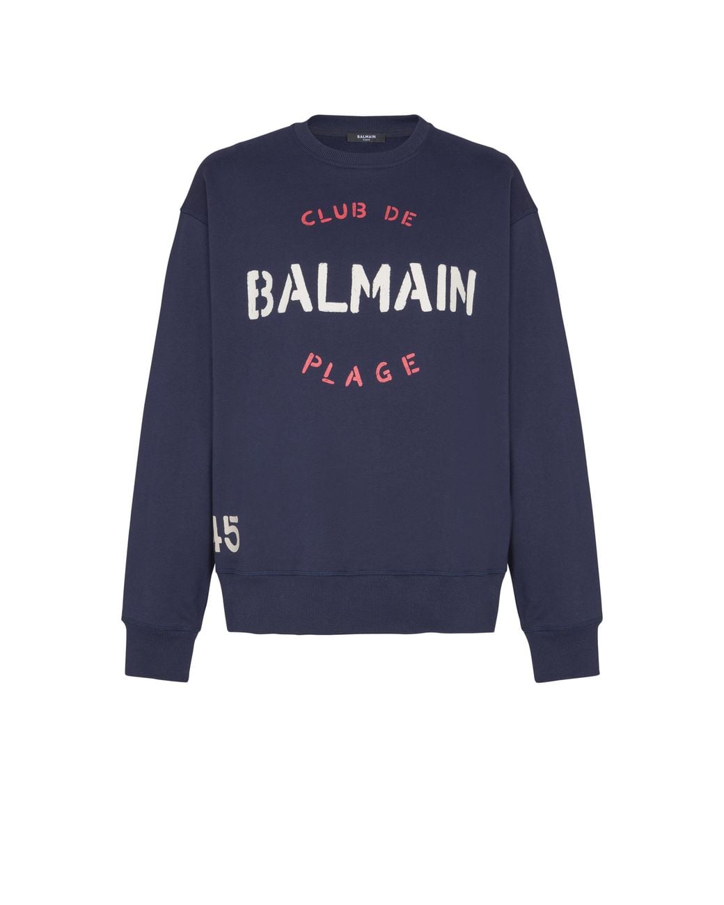Sweatshirt with Balmain Club print Oversized fitRound neckLong sleevesContrasting Balmain Club logo printed on the frontRibbed waist and cuffsEco-cotton fleeceModel measures 190cm and wears a size MMain material: 100% cottonMade in PortugalItem: GH0JQ130BD51100% of the cotton fibres used to make this garment are certified and organically farmed