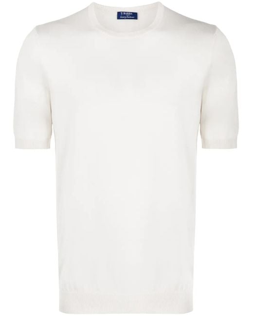 White silk knitted plain T-shirt from Barba featuring a round neck, short sleeves and a ribbed hem. Size: 50. Gender: Male. Material:Silk. Colour: white