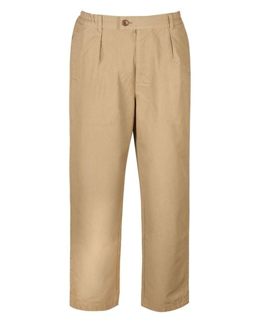 Mid-rise straight-leg trousers from BARBOUR featuring beige, cotton, pleat detailing, straight leg, mid-rise, off-centre front fastening, concealed fly and button fastening, belt loops, two side slit pockets and rear patch pocket. Cotton Lining: Cotton 100% Outer: Cotton 100% BR94 TRENCH Colour: natural