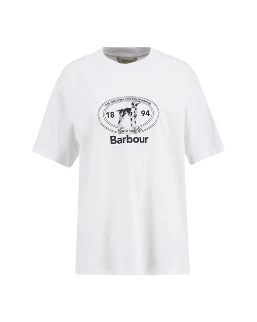 Barbour T-shirt in White, designed for everyday wear and casual styling. Key attributes: White | Bianco | Cotton | Composition care: 100% Cotone Colour: white