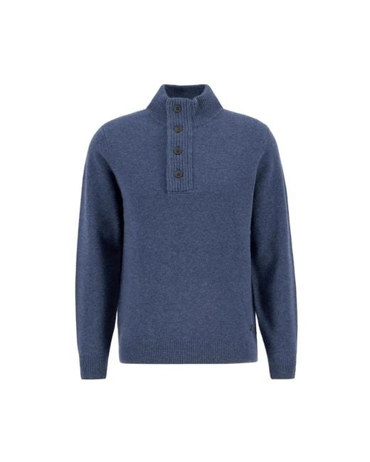 Elevate your casual style with this Barbour turtleneck sweatshirt in dark indigo. Crafted from 100% Lana fabric, it features alcantara elbow patches, a cosy ribbed funnel neck, and a branded zip closure. Complete with a leather Barbour badge for a touch of distinction, this sweatshirt is perfect for casual outings. Colour: blue