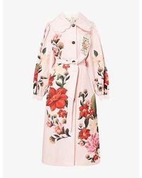 Go to FARFETCHBrown patterned contrasting collar ruffled detail button fastening flap pockets Size: XS. Gender: Female. Material:Wax/Cotton/Cotton. Colour: brown