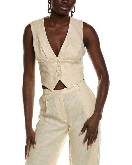 Color/pattern: eggnog Approximately 20in from shoulder to hem Model is 5'10 and is wearing a size 4. Measurements may vary slightly by size. Design details: V-neck and pleated detailing Button front 100% linen Lining: 100% cotton Hand wash Imported