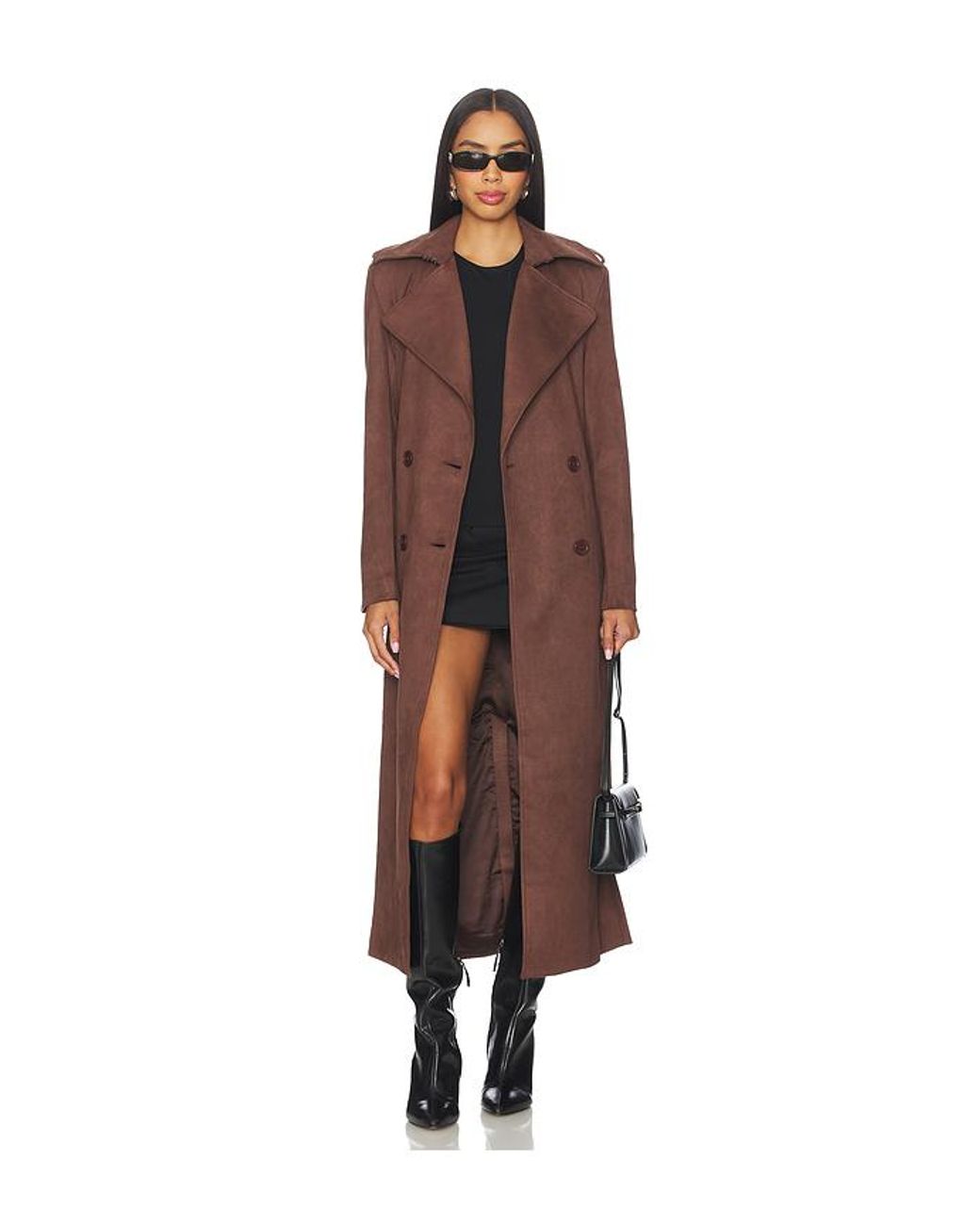 Bardot Kira Faux Suede Trench Coat in Brown. Size 10. Also in 4, 6, 8. Bardot Kira Faux Suede Trench Coat in Brown. Size 4, 6, 8. Shell: 95% cotton, 5% elastane Lining: 97% polyester, 3% elastane. Hand wash. Exposed front button closure. Hook and eye closure at neck/collar. Detachable belt. Seam pockets. BARD-WO149. 57053JB4. Launched in 1996, Australian fashion power house Bardot creates thousands of the hottest fashion styles for women every year. Practical yet playful, Bardot continues to make a mark not only on the Australian fashion scene, but is quickly making inroads on the international fashion market as well