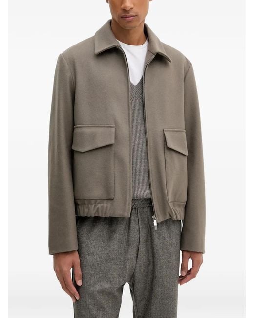 Men's Grey Flap-Pocket Zip-Up Jacket