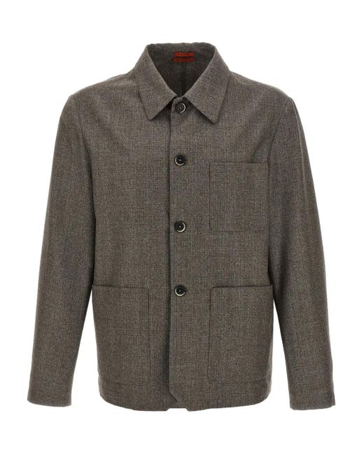 Men's Grey Patch-Pocket Button-Closure Shirt