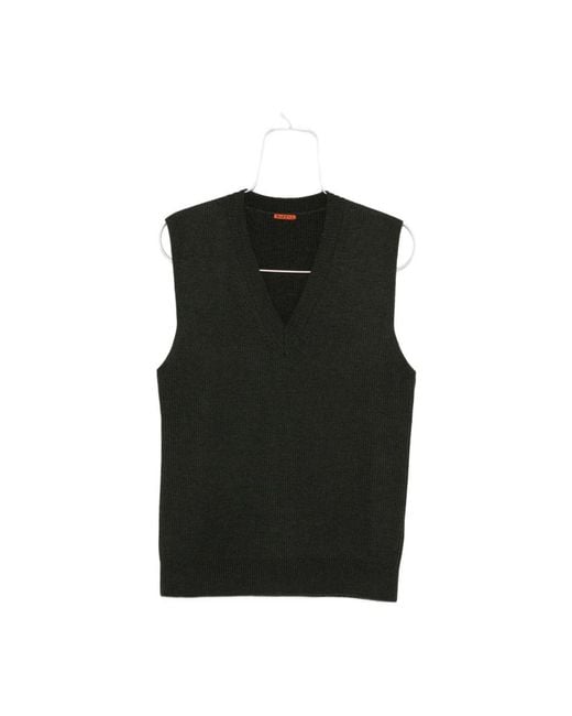 Elevate your style with this Barena Venezia dark green V-neck ribbed knit sleeveless top for men, featuring a straight hem. Colour: black