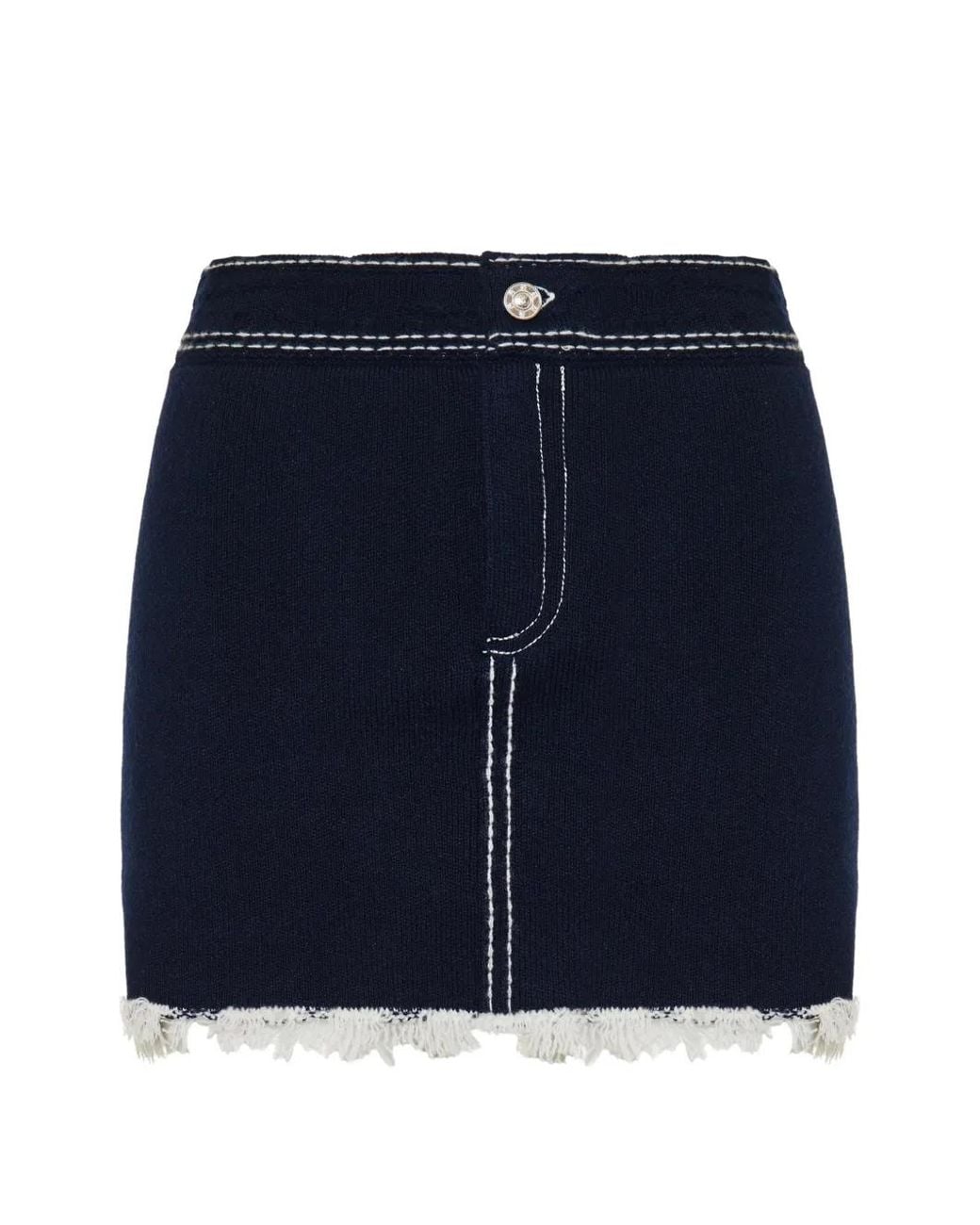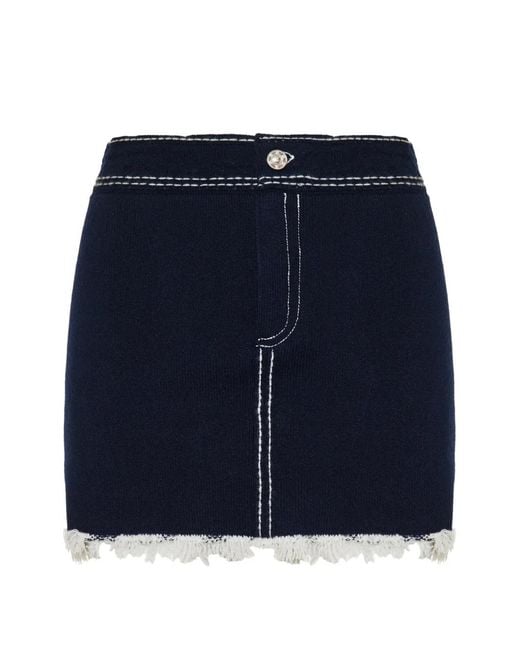 Mette Fringed Asymmetric Mini Skirt - Blue