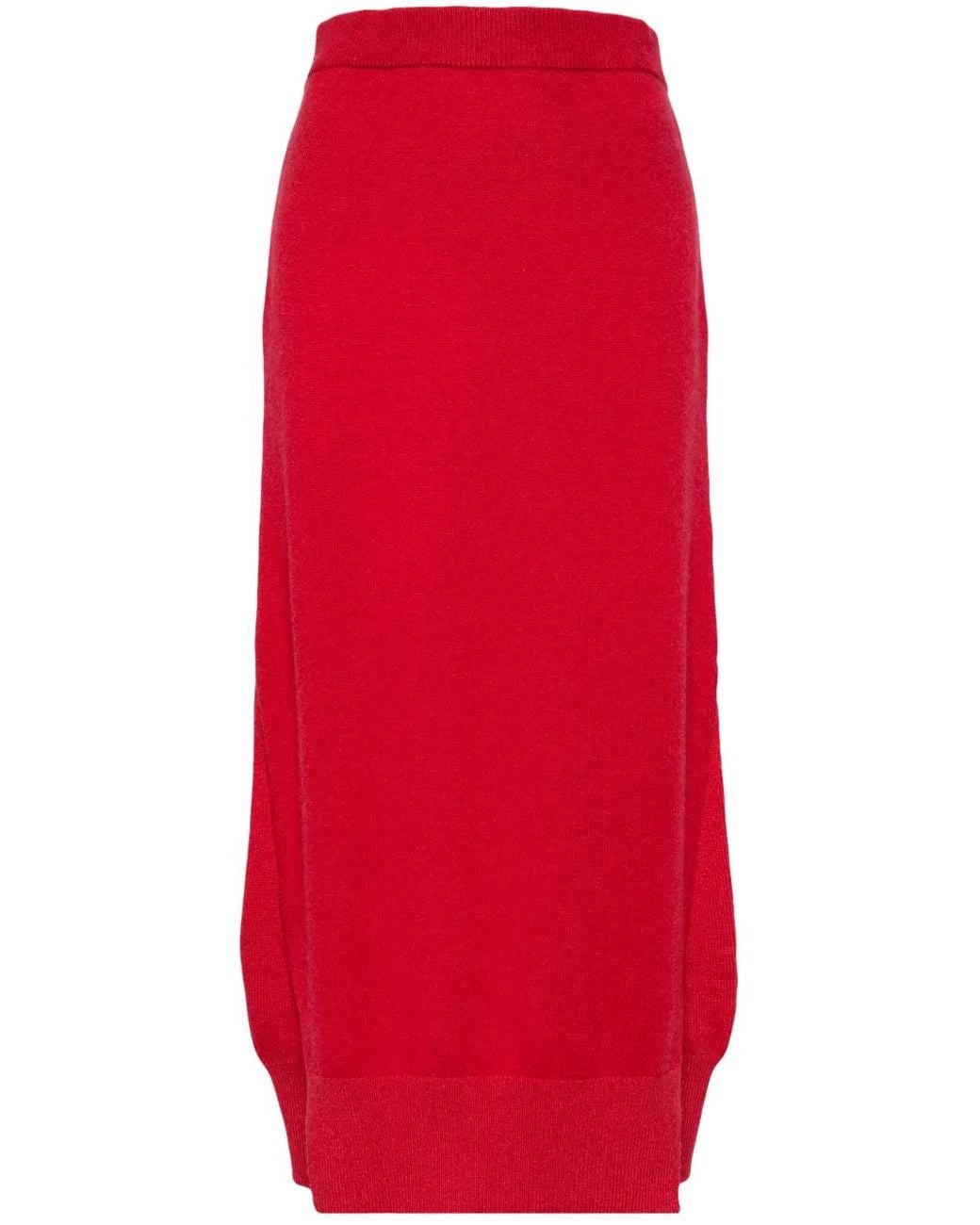 Red cashmere ribbed waistband ribbed hem mid-length Size: S. Gender: Female. Material:Cashmere. Colour: red