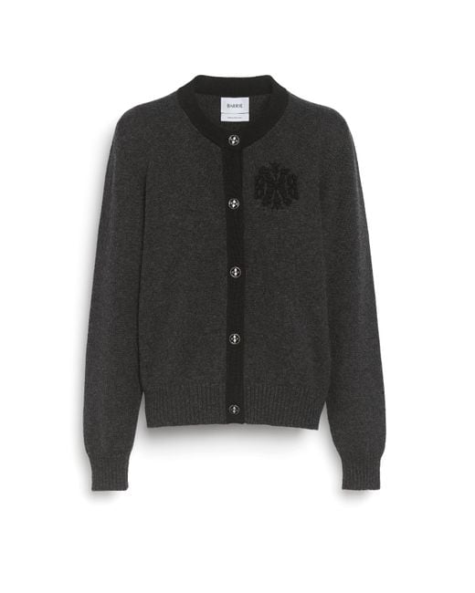 Marled cashmere cardigan with B logoInspired by our signature "Thistle League" range, this cardigan features a miniature version of the logo, knitted in cashmere with Barrie's iconic raised stitches. Barrie emphasises marled colours, twisted with a vibrant colour that highlights the Barrie logo and its emblematic Scottish thistle. This fine cashmere cardigan can be worn with the matching cashmere top and cashmere trousers for an elegant and confortable total look. The model is 1.78 tall and is wearing a size S. Colour: black