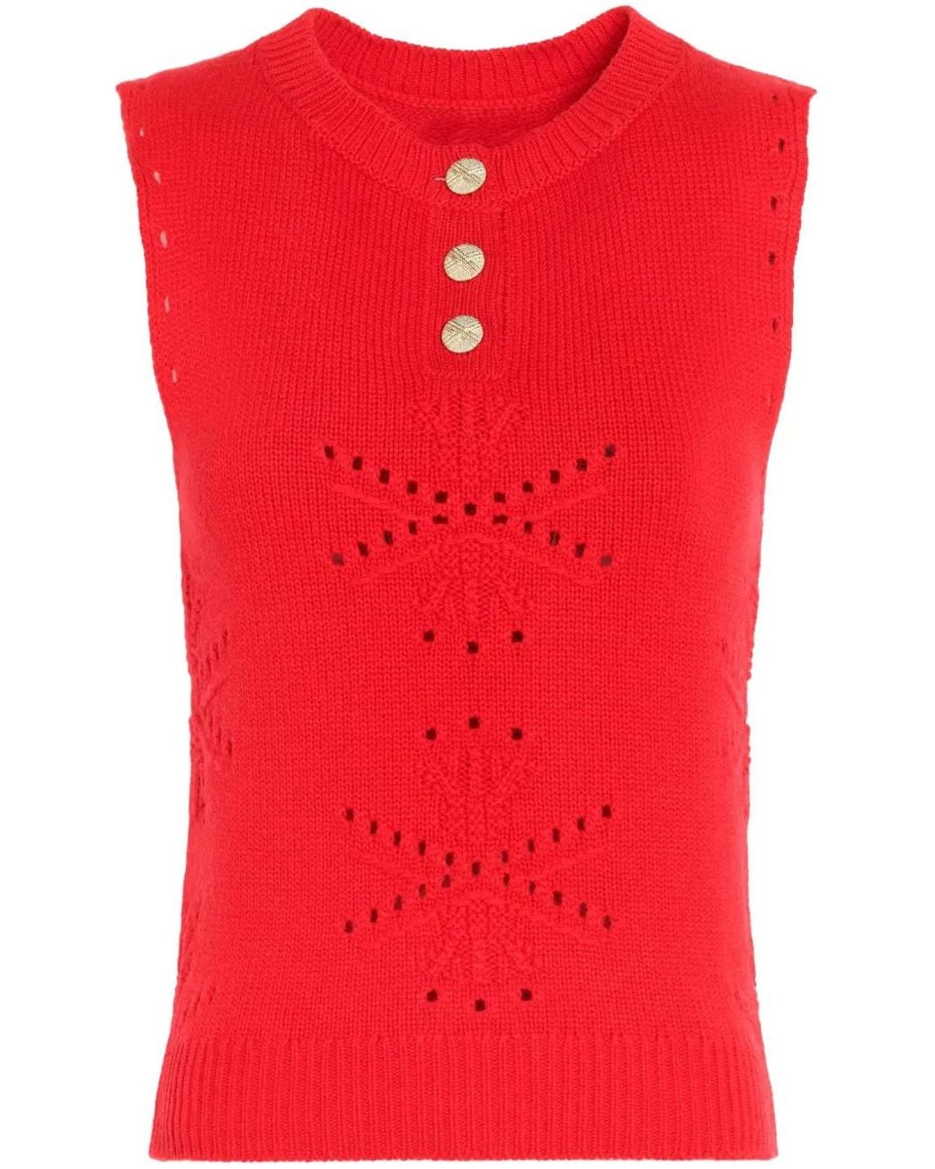 Red crew neck cut-out detailing ribbed hem Size: XS. Gender: Female. Material:Cashmere/Cotton. Colour: red