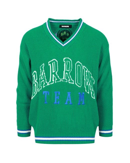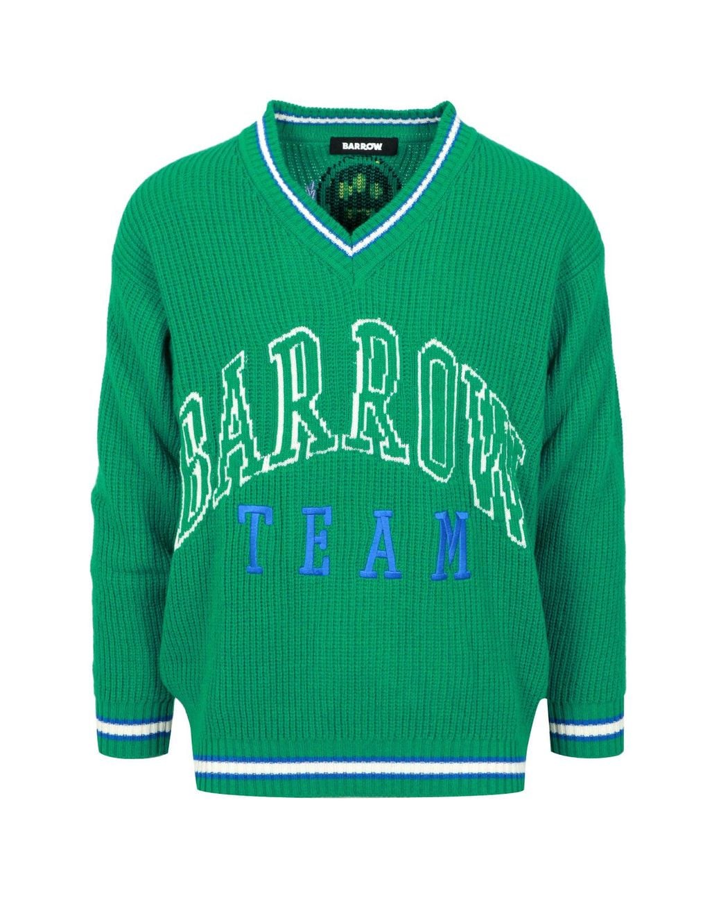 - Wool and viscose blend - V-neck - Long sleeves - Jacquard logo on the back - Ribbed hem and cuffs Colour: green
