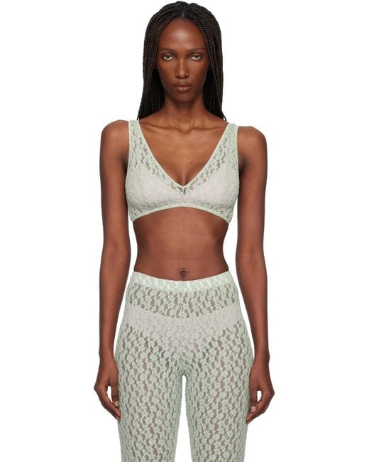 Sheer stretch organic cotton lace bralette. · Certified GOTS, OCS-100, and OEKO-TEX® · Embroidered floral pattern throughout · V-neck · Fixed straps Supplier color: Conta Green Colour: multicolour