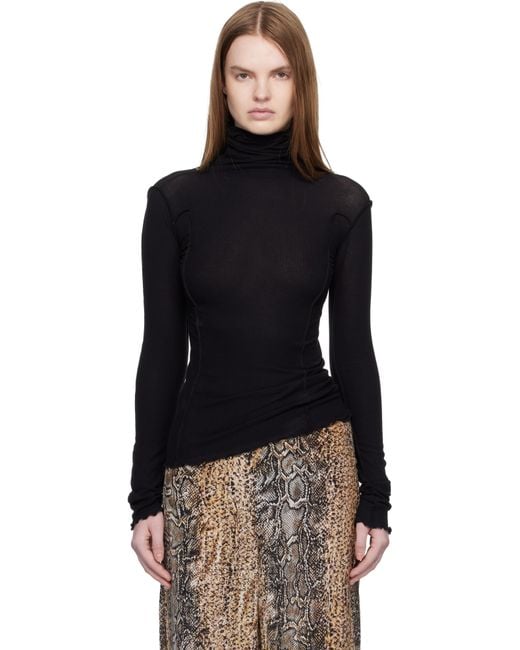 Stretch organic cotton ribbed jersey turtleneck. · Certified GOTS, OEKO-TEX®, and OSC 100 · Exposed seams throughout · Lettuce edge at collar, hem, and cuffs Supplier color: Black Colour: black