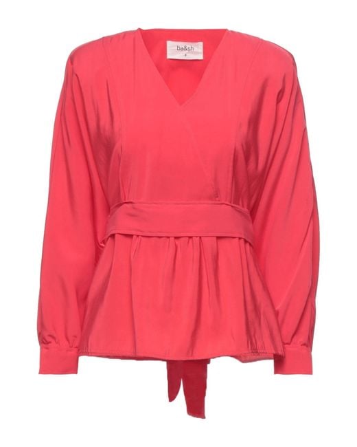BA&SH. top, woven, plain colour, belt, v-neck, long sleeves, snap-fastening cuffs. 86% Viscose, 14% Polyester.