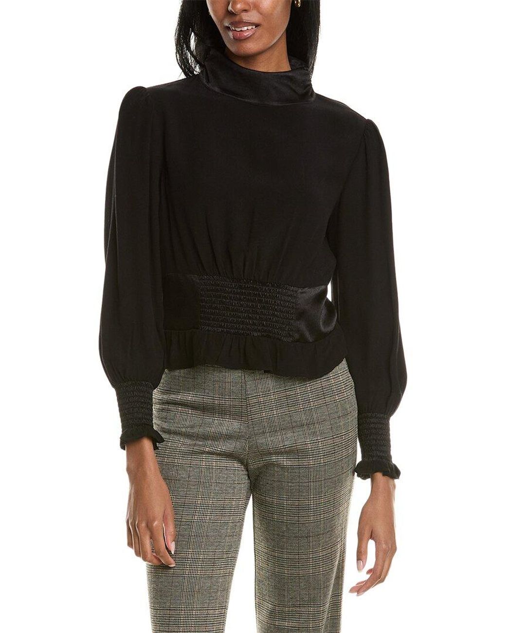About the brand: Parisian-inspired style that exudes joy. Blouse in noir with mock collar, and smocked cuffs and waist Approximately 21in from shoulder to hem Model is 5'10 and is wearing a size 1. Measurements may vary slightly by size. Keyhole back with button-and-loop closure 100% viscose Dry clean only Imported