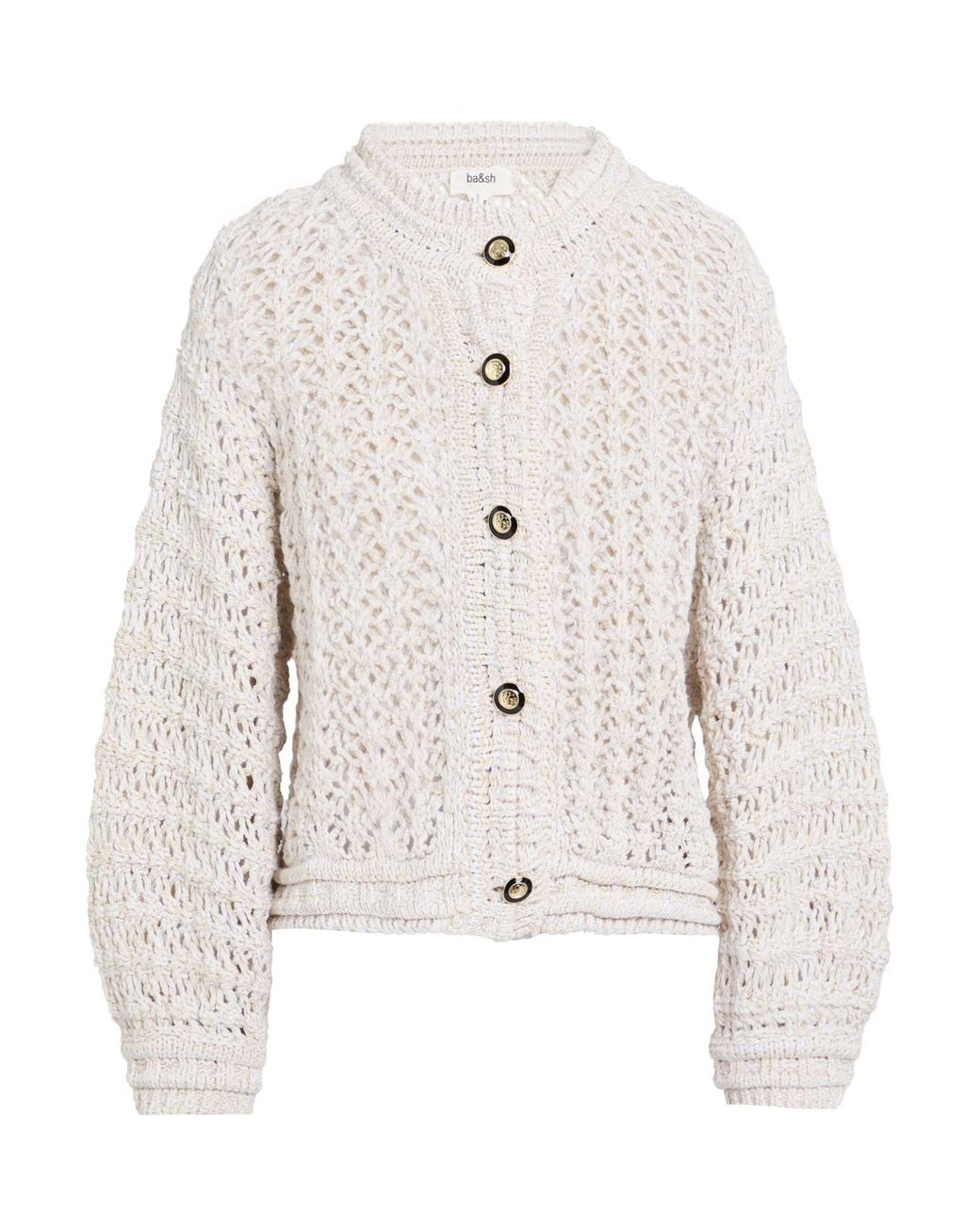 BA&SH. knitted, medium-weight knit, no appliqués, multicolour, long sleeves, button fastenings, machine wash or dry clean, do not bleach, do not tumble dry. 62% Cotton, 20% Polyester, 15% Viscose, 3% Metallic fiber.