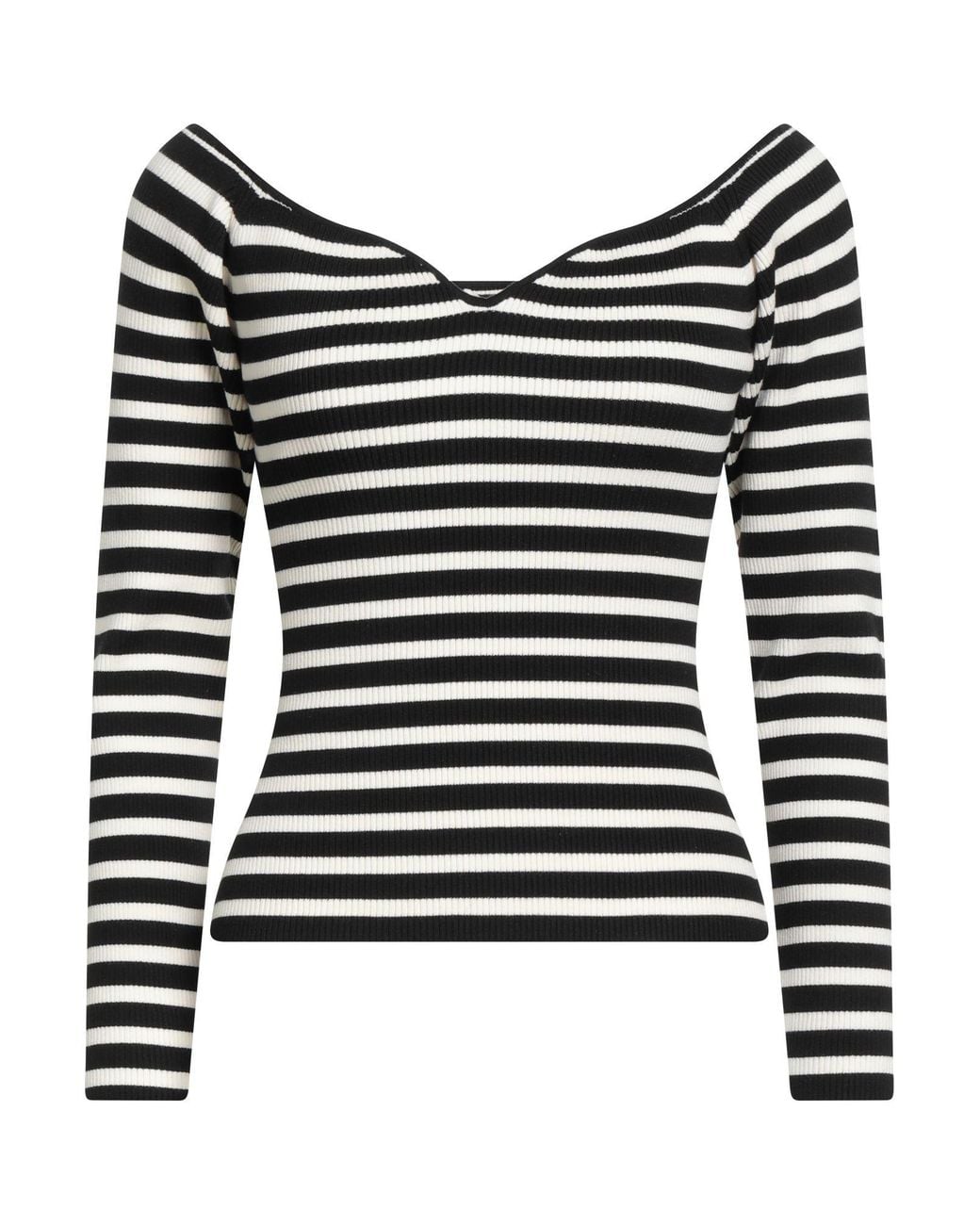 BA&SH. ribbed-knit, lightweight knit, no appliqués, striped, deep neckline, long sleeves, hand wash or dry clean, do not bleach, do not tumble dry. 62% Viscose, 38% Polyester.
