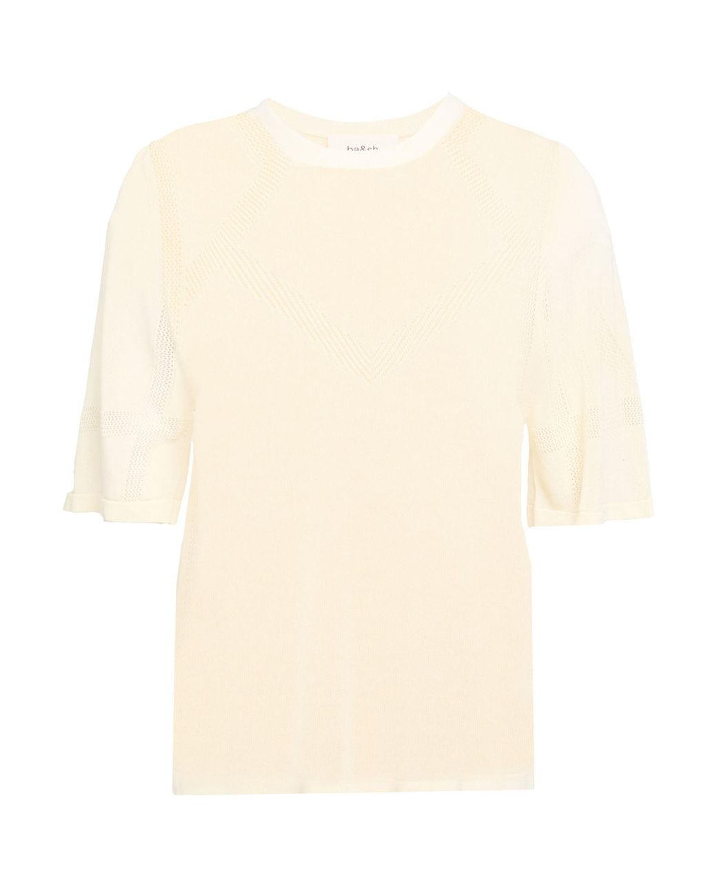 BA&SH. knitted, lightweight knit, no appliqués, plain colour, crewneck, short sleeves, machine wash or dry clean, do not bleach, do not tumble dry. 70% Viscose, 30% Cotton.