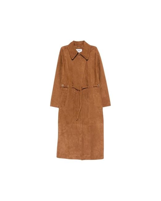 Tie-Waist Leather Coat - Brown