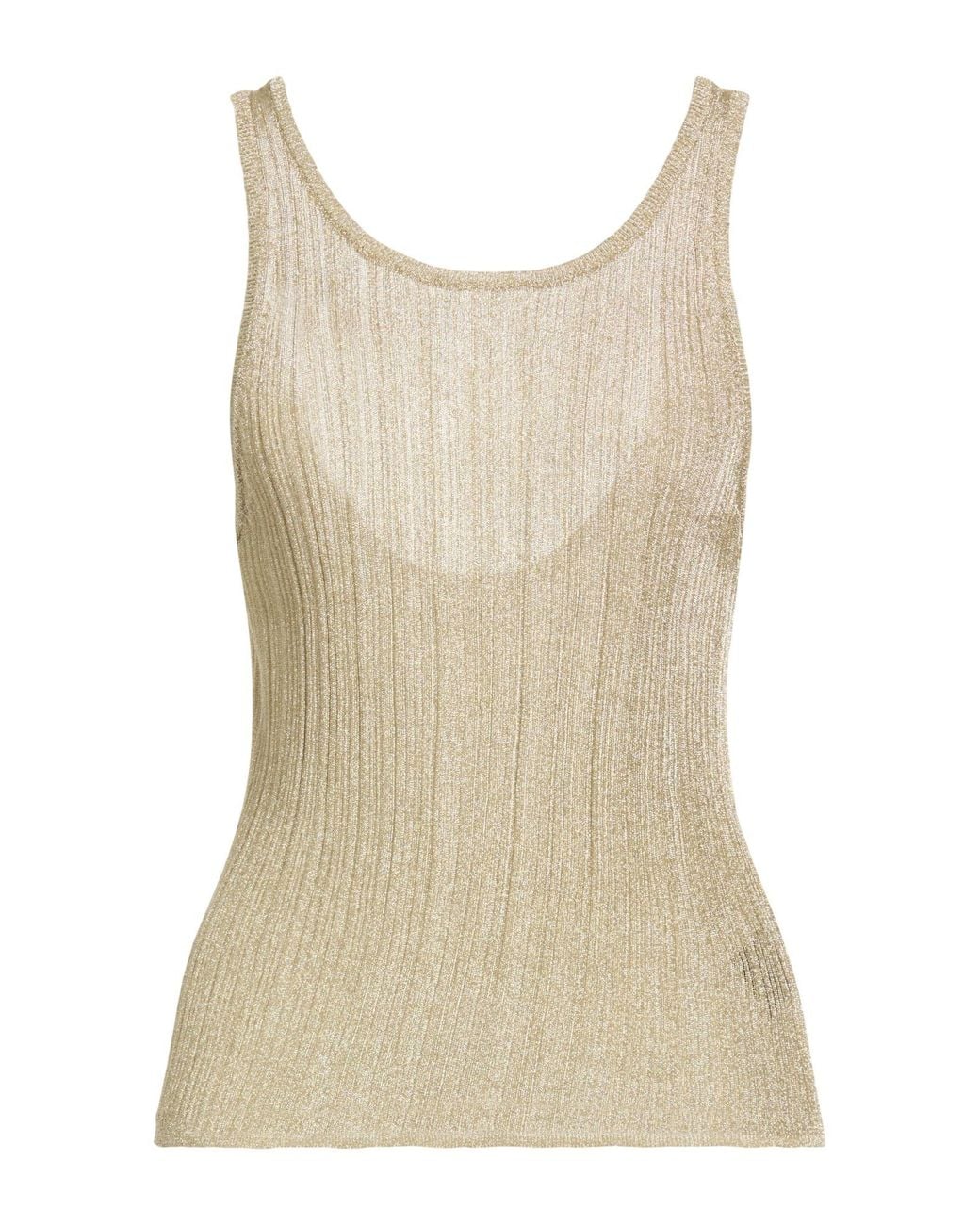 BA&SH. top, knitted, metallic, lightweight knit, plain colour, no appliqués, crewneck, sleeveless, hand wash or dry clean, do not bleach, do not tumble dry. 70% Viscose, 30% Metallic fibre. Colour: natural