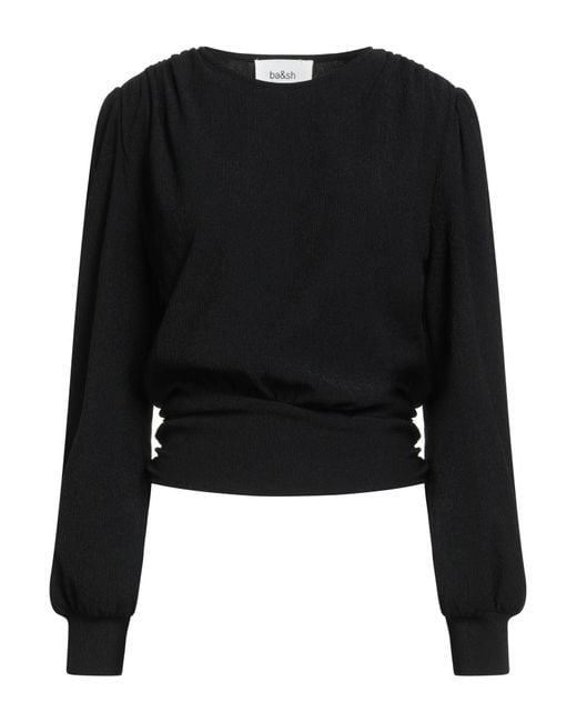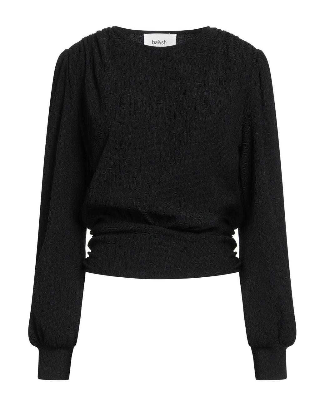 BA&SH. top, crepe, stretchy fabric, plain colour, gathered, cutout, crewneck, long sleeves, hand wash or dry clean, do not bleach, do not tumble dry. 98% Polyester, 2% Elastane.