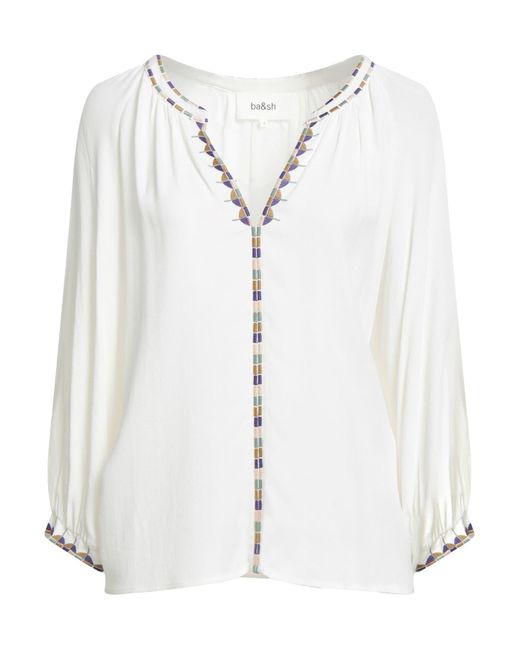BA&SH. top, crepe, plain colour with appliqués, embroidered, v-neck, 3/4 length sleeves, hand wash or dry clean, do not bleach, do not tumble dry. 100% Viscose, Polyester.