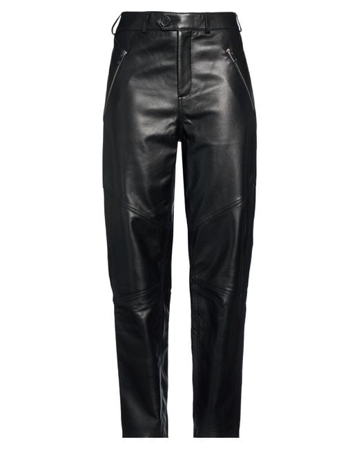 BA&SH. tapered trousers, leather, plain colour, no appliqués, high waisted, belt loops, regular fit, zip fastening, button fastenings, zipped pockets, slit pockets, do not wash, do not bleach, do not tumble dry, do not iron, contains non-textile parts of animal origin. Lambskin. Colour: black