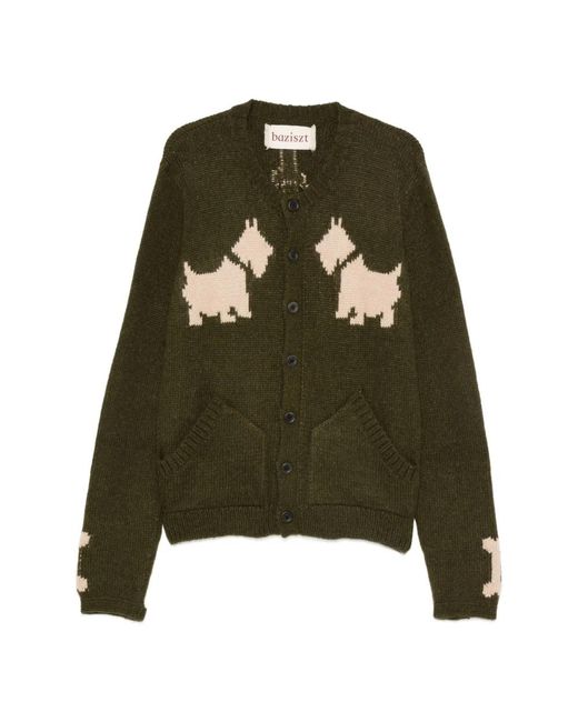 The Baziszt Bobby Cardigan is a knit layer with a crew neckline, long sleeves and front pockets—designed for practical everyday wear and easy layering. Key attributes: Green | Khaki | Front pockets | Crew neckline | Long sleeves | Knit construction Colour: green