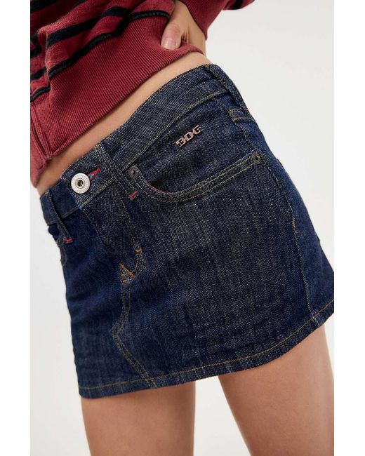 Cute mini skirt from BDG. Rinsed denim construction complete with a low-rise waist, belt loops, button and fly fastening, classic five pockets and contrast stitching. Topped with a BDG logo plaque. UO exclusive. Colour: blue