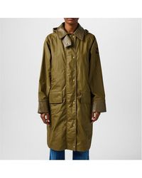 Go to BelstaffChallenging weather is no match for the Acer Coat in Aloe. This oversized waxed cotton coat is made with a throat latch and a detachable hood for extra protection. Colour: green