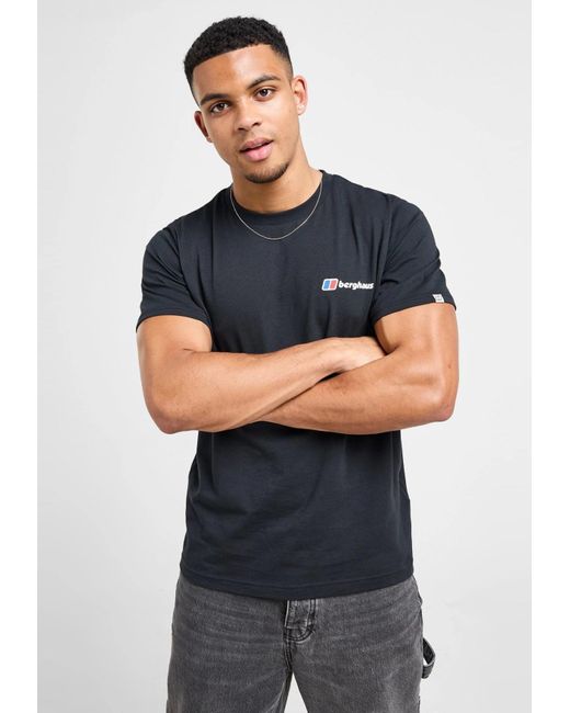 Berghaus Men's Mountain Coordinates T-Shirt in a Black colourway. - - . This tee is cut from soft, durable cotton for total comfort. - - . It features and ribbed crew neckline and short sleeves for a classic cut and is finished up with a mountain graphic on the back and Berghaus branding on the chest. - - . model is 6'1" with a 39" chest and wears size M. Colour: blue