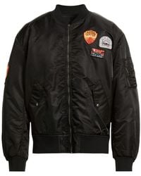 Go to YOOXBERNA. bomber jacket, shell, plain colour with appliqués, patches, brand logo, long sleeves, ribbed cuffs, synthetic filling, lightweight padding, zip fastening, pockets, machine wash or dry clean, do not bleach, tumble dry. 100% Nylon. Colour: brown