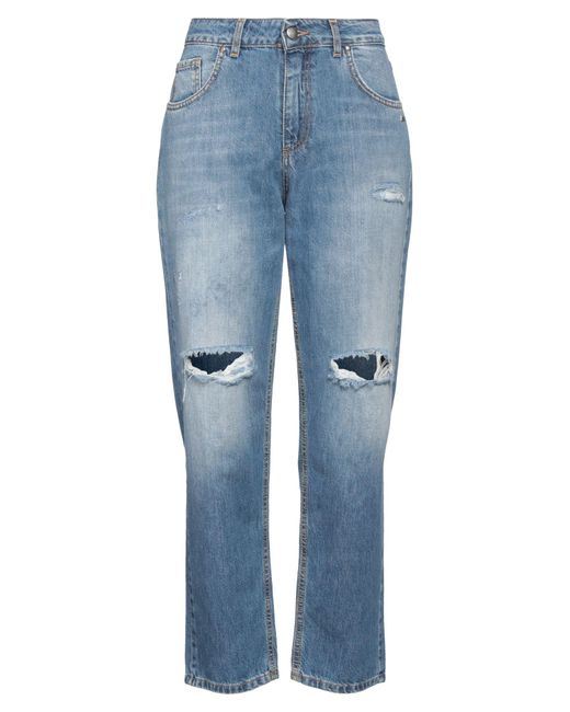 BERNA. tapered jeans, denim, distressed, faded, plain colour, brand logo, medium wash, high waisted, belt loops, regular fit, 1 button, zip fastening, pockets, machine wash or dry clean, do not bleach, do not tumble dry. 100% Cotton.