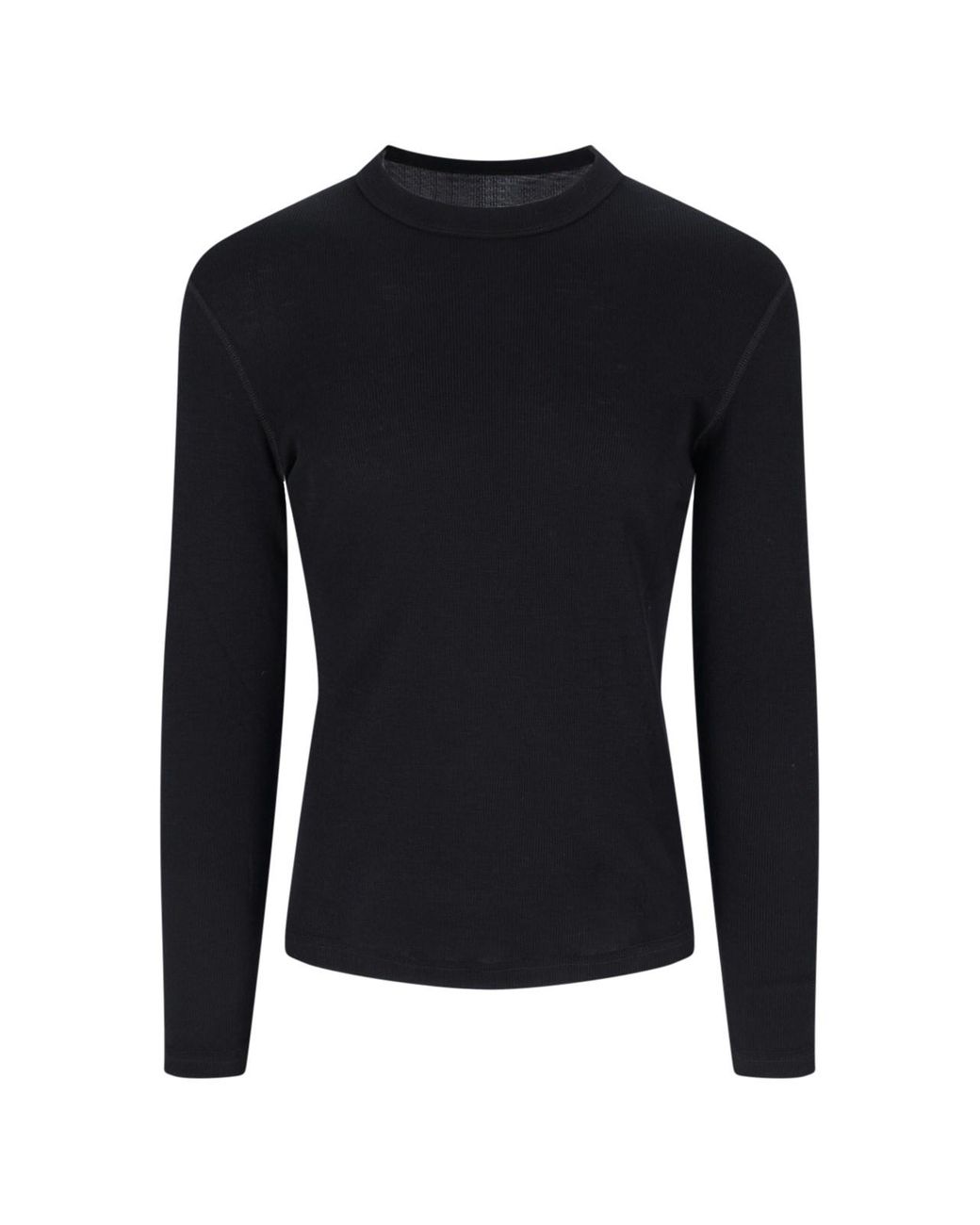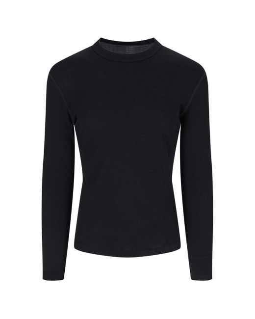 Berner Kühl black ribbed wool ribbed jumper with round neckline, back logo label, straight hem. Colour: blue