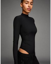 Tops by Bershka Bandeau lining Long sleeves Open back Press-stud fastening Bodycon fit Colour: white