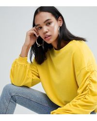 Sweatshirt by Bershka, Designed in collaboration with Bershka and Pantone, Throw on and go, Crew neck, Dropped shoulders, Fitted cuffs, Cropped length, Relaxed fit, Think baggy and casual. Bershka has been dressing the young and adventurous since 1998. Influenced by the latest music, technology and social media trends, it upgrades your Saturday AM-to-PM style with cool denim, classic knits and awesome accessories. Denim/ elastane/ polyester. Colour: yellow
