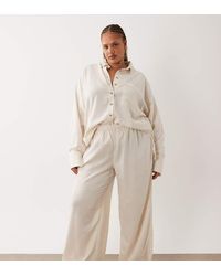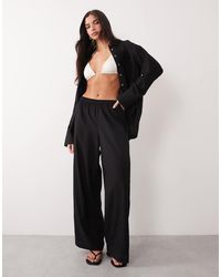 Trousers & Leggings by Bershka Regular rise Sheer finish Elasticated waistband Wide cut Regular fit. Polyester. Colour: black