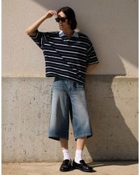 Polo Shirts by Bershka Stripe design Polo collar Partial button placket Long sleeves Relaxed fit. Cotton/Polyester/Elastane. Colour: blue