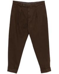 Go to FARFETCHNavy blue pleated front belt loops cuffed hem side seam pockets button fastening Size: 48. Gender: Male. Material:Cotton/Elastane. Colour: blue